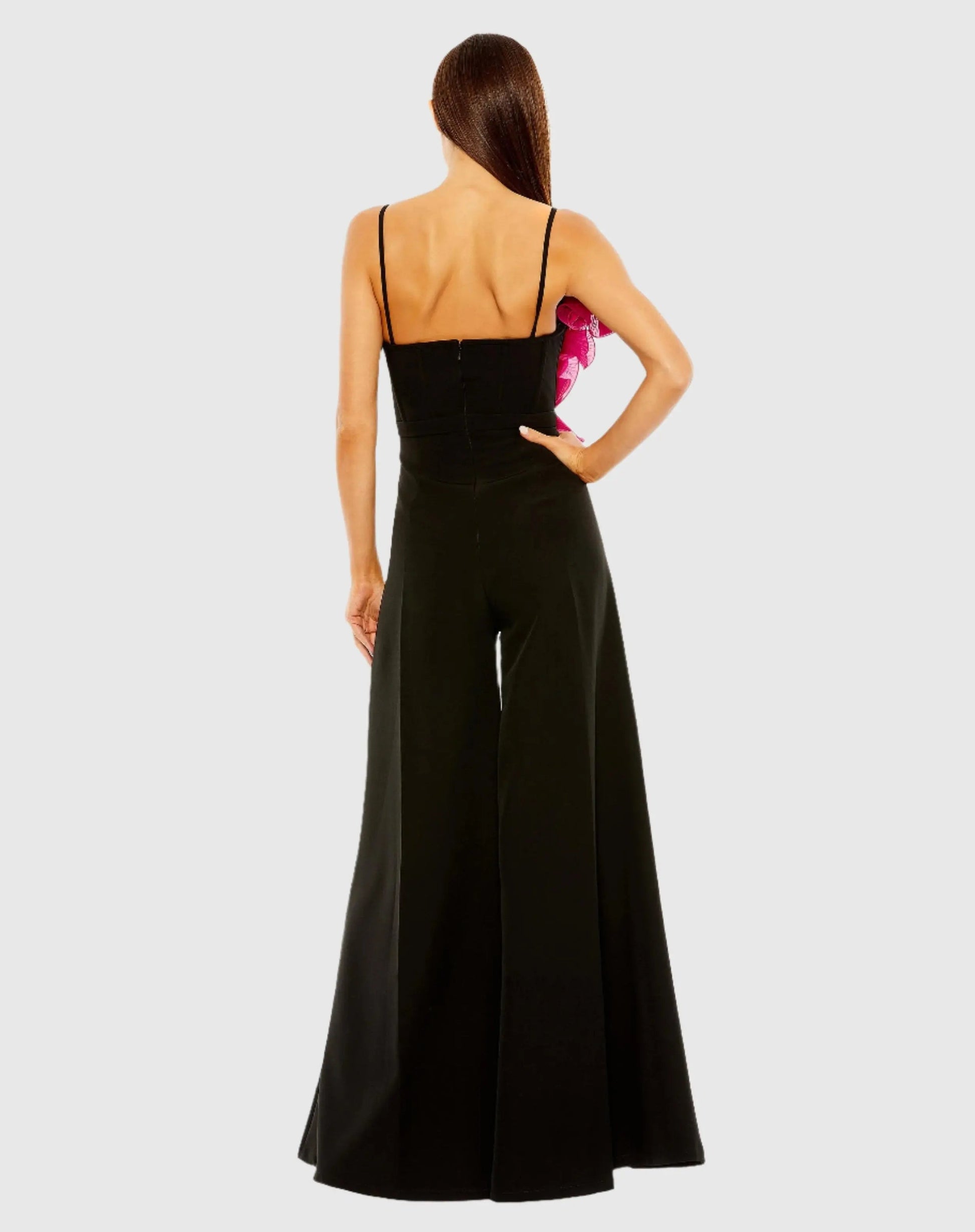 Perfect for a night out or a special occasion, this jumpsuit is sure to turn heads. The wide-leg silhouette offers both comfort and style, while the ruffle detail adds a dramatic flair.