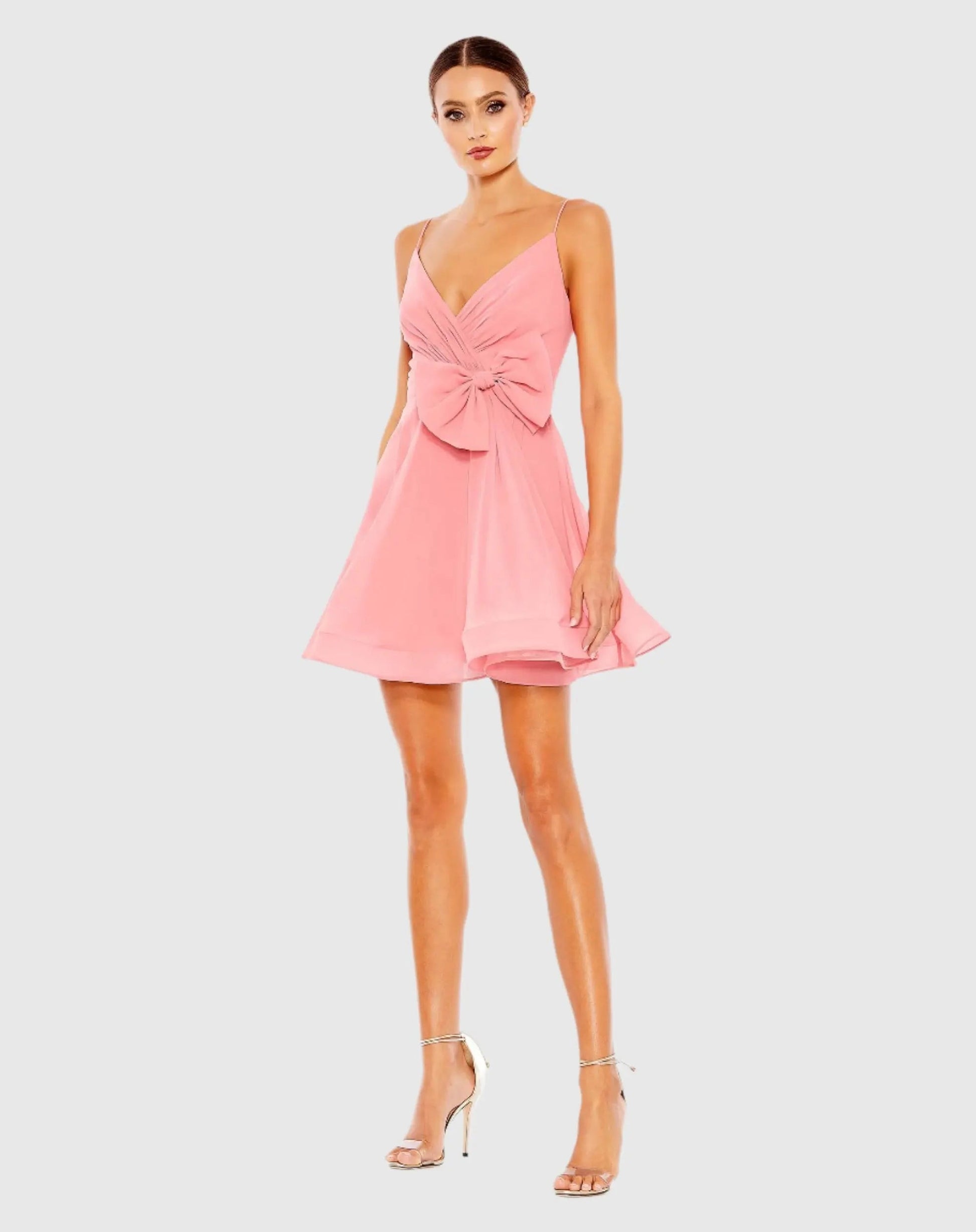 Pink Faux Wrap Bow Detail Flowy Mini Dress