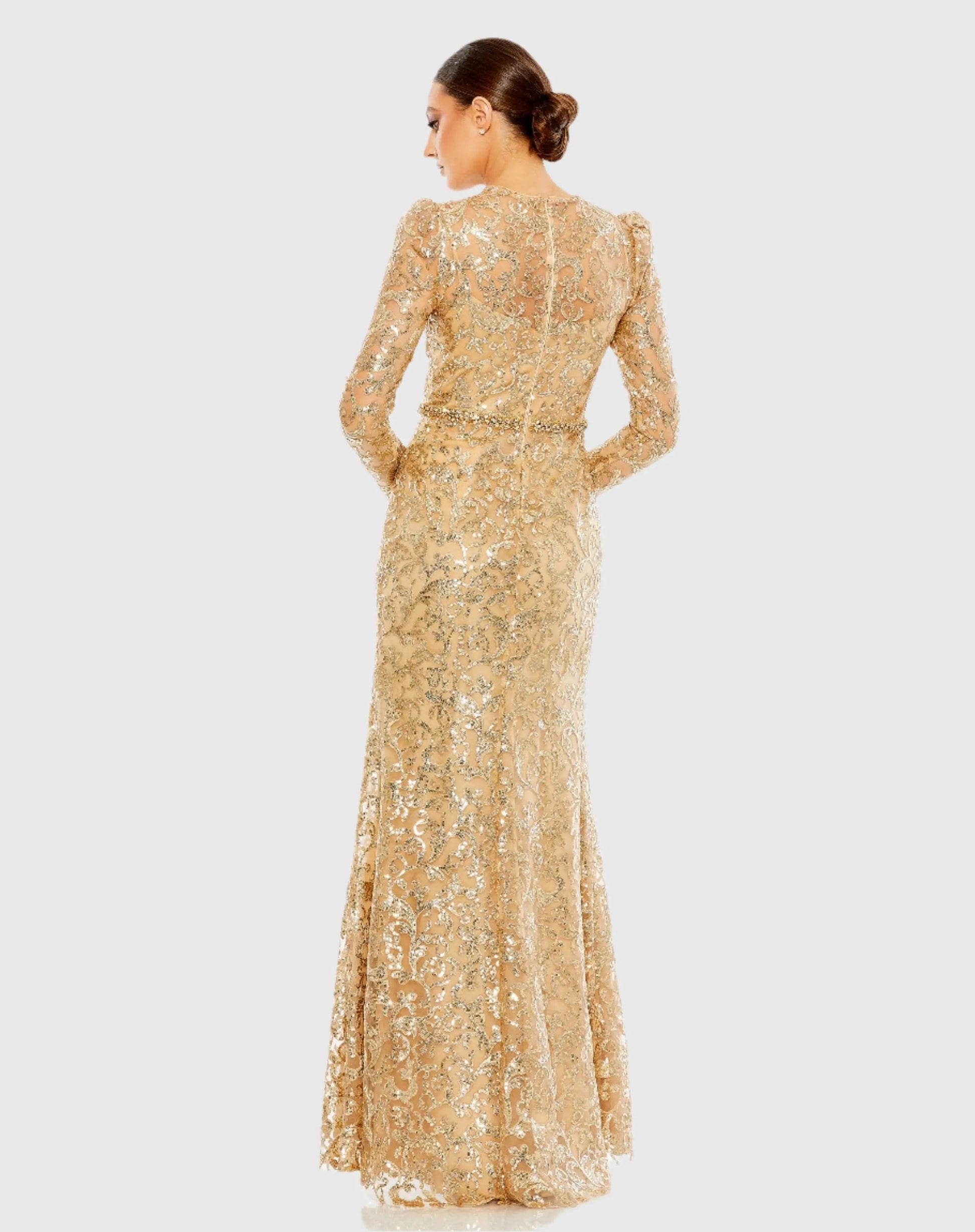Gold Embellished High Neck Long Sleeve Gown