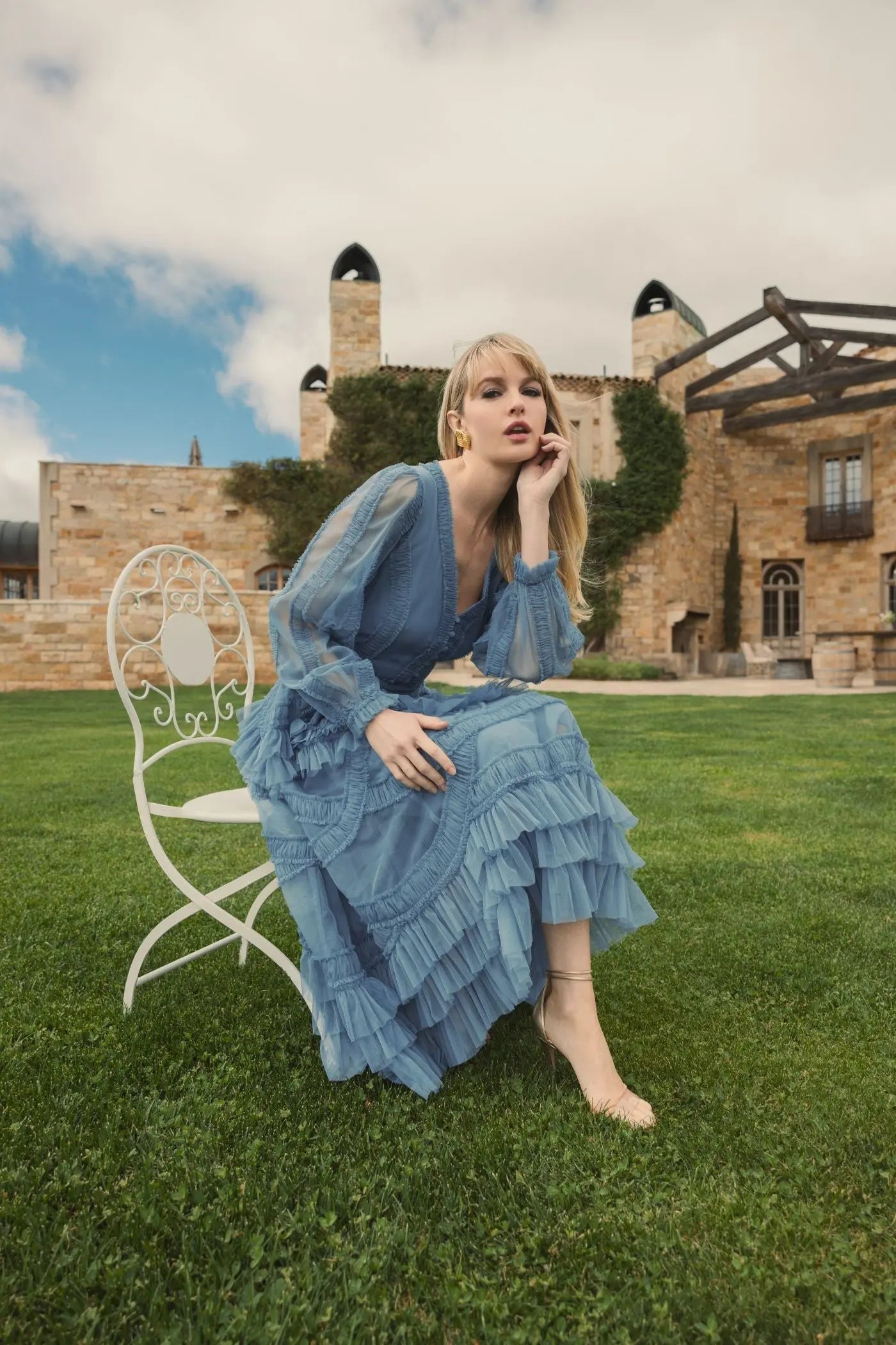 - Sheer long blouson sleeves