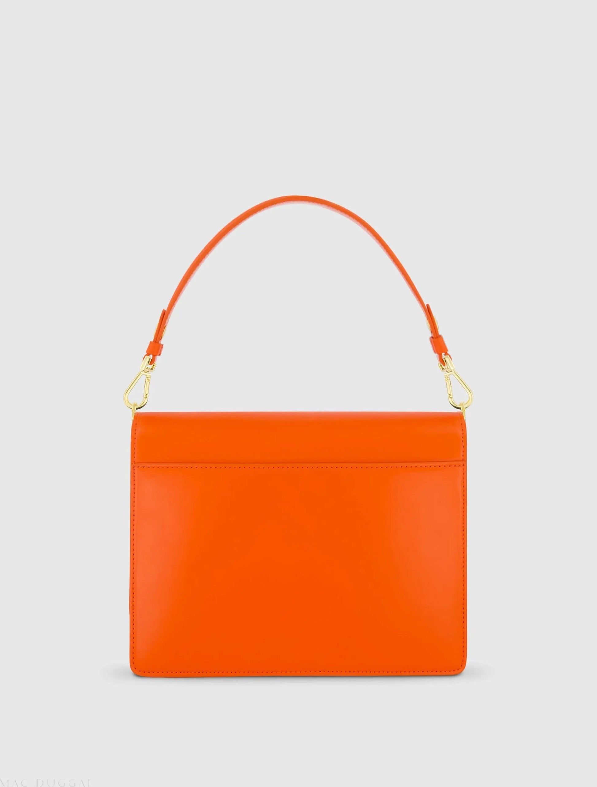 Orange Classic Leather Medium Shoulder Bag with Detachable Strap