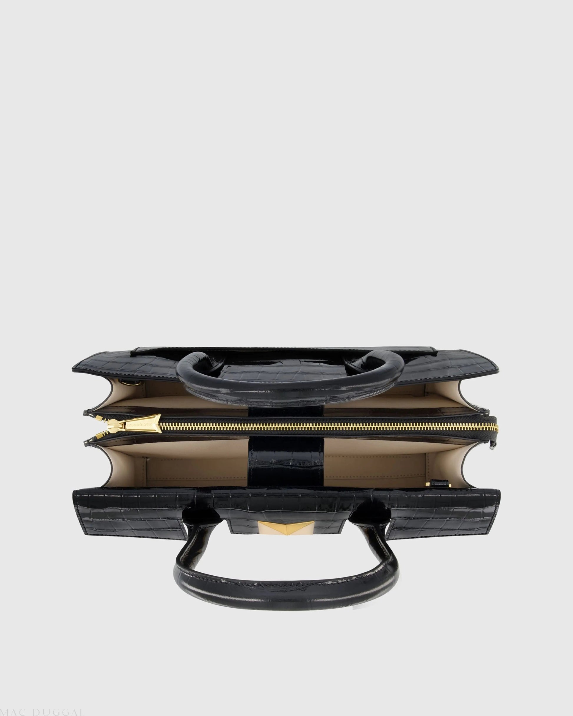 Black Crocodile Leather Tote Bag With Gold Hardware