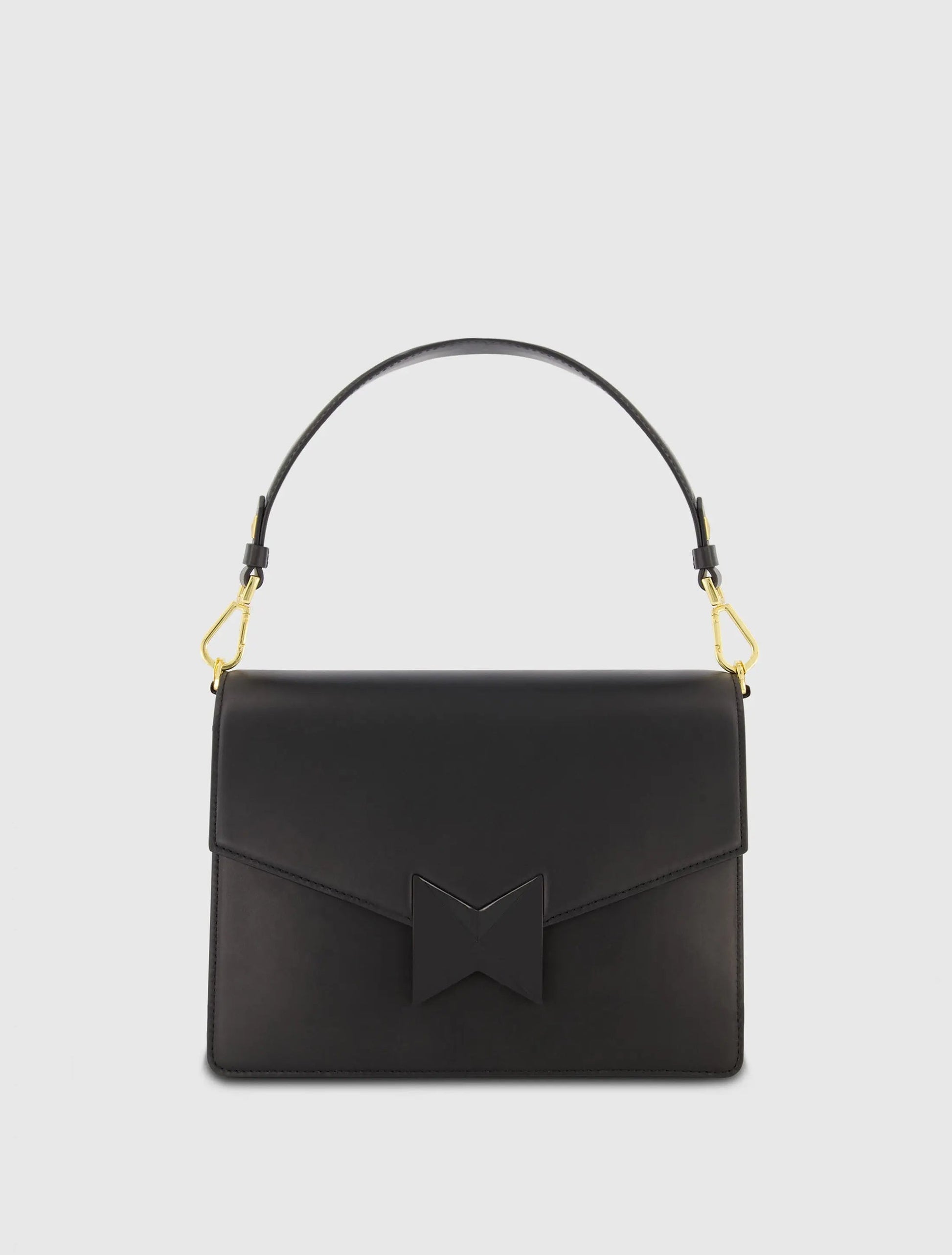 Black Classic Leather Medium Shoulder Bag with Detachable Strap