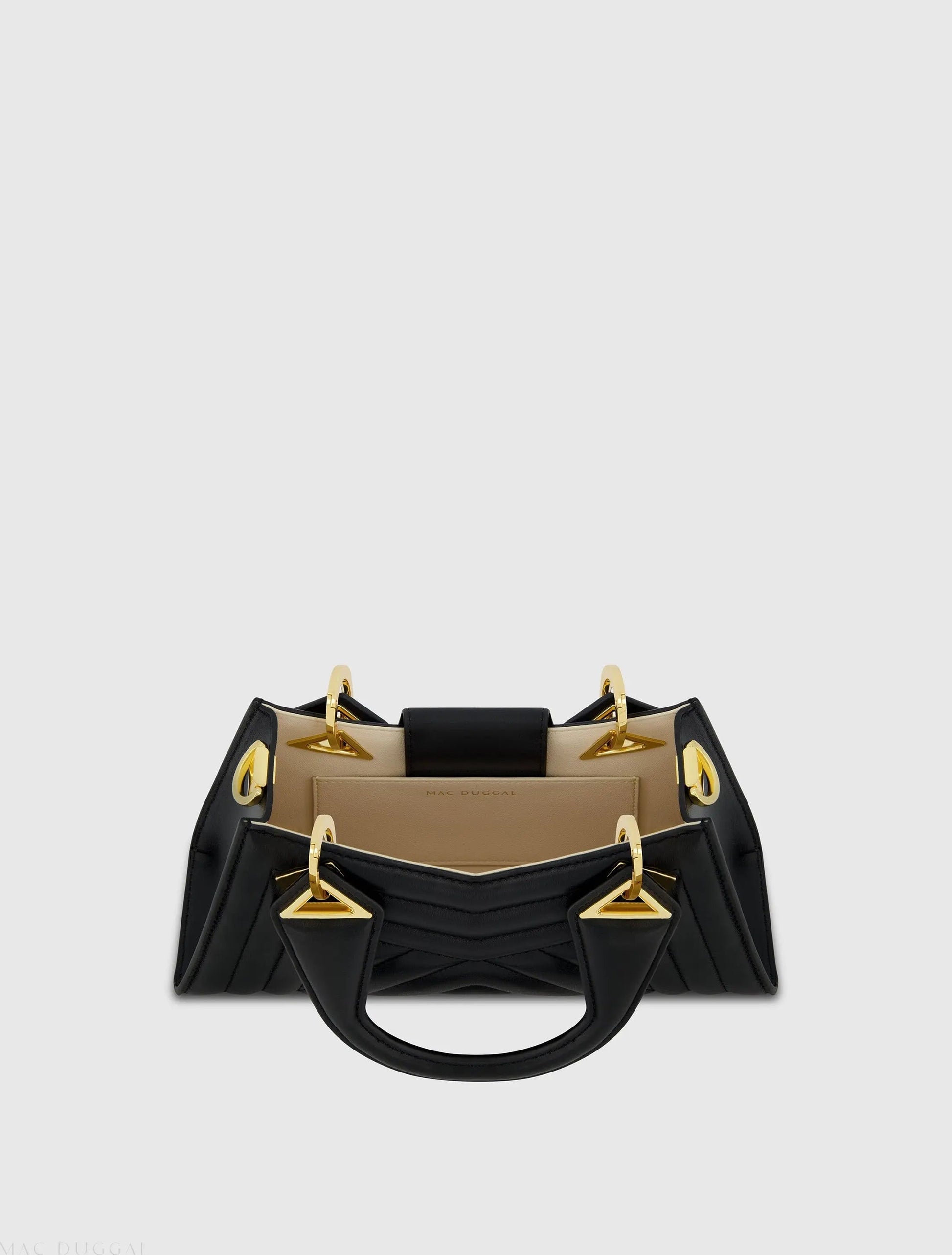 Discover our Small Angular Quilted Napa Leather Handbag, crafted from premium Napa leather for timeless style. This compact design features exquisite quilting, ideal for adding a touch of elegance to any outfit. With its smaller size, it offers both versatility and chic appeal.