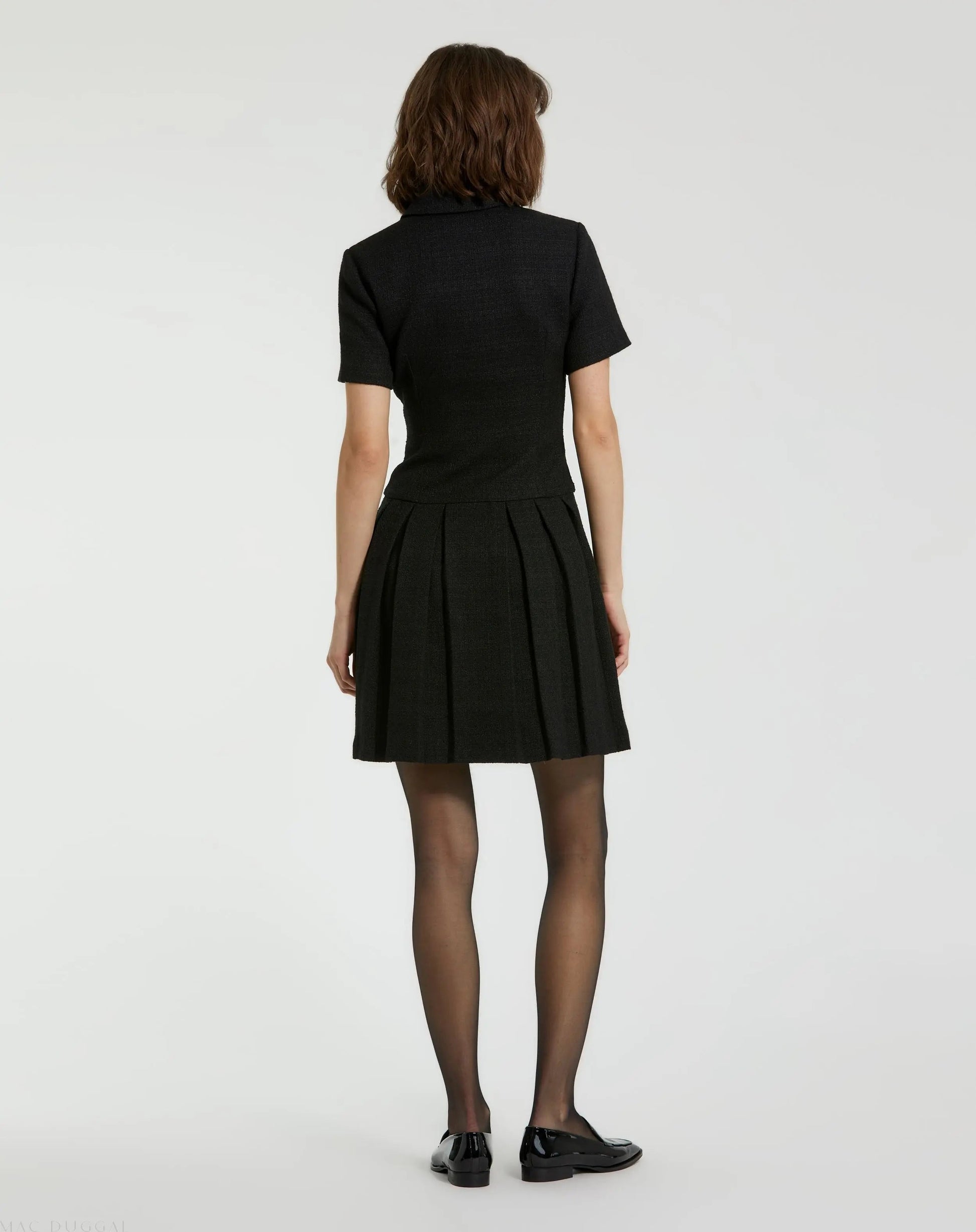 Elevate your wardrobe with our Short Sleeve Tweed Blazer Mini Dress. This chic ensemble combines the sophistication of a blazer with the playful charm of a mini dress. With its short sleeves and tailored silhouette, this dress offers both style and comfort. Step out in confidence with this versatile and fashion-forward piece.